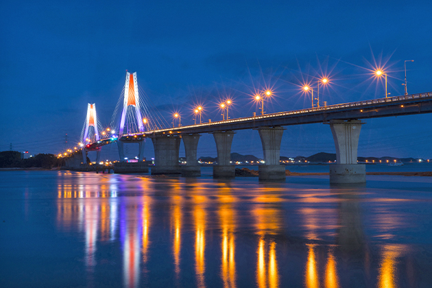 영흥대교의 야경은 일곱색깔 무지개로 변하여 아름다운 모습의 감탄사를 자아내게 하는