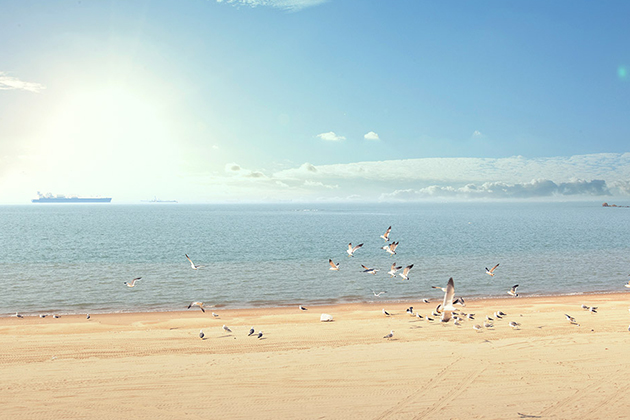 백사장에는 자갈이 함께 섞여있어 일광욕 등을 즐기기가 좋고 주변에는 100년이 넘는
